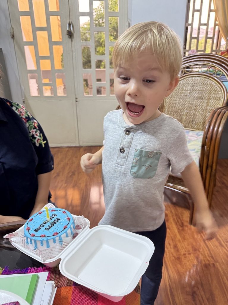 One of the joys of being a parent isn’t what I get to enjoy myself but rather what I get to enjoy vicariously through my kids. Caleb was such a delight on my birthday. I don’t know if he thought it was his birthday or if he realized that it was mine or if he was just going with the fun – but it doesn’t really matter. He was so thrilled to see the cake, sing the song, help me blow out the candles, and spend time with all the people.