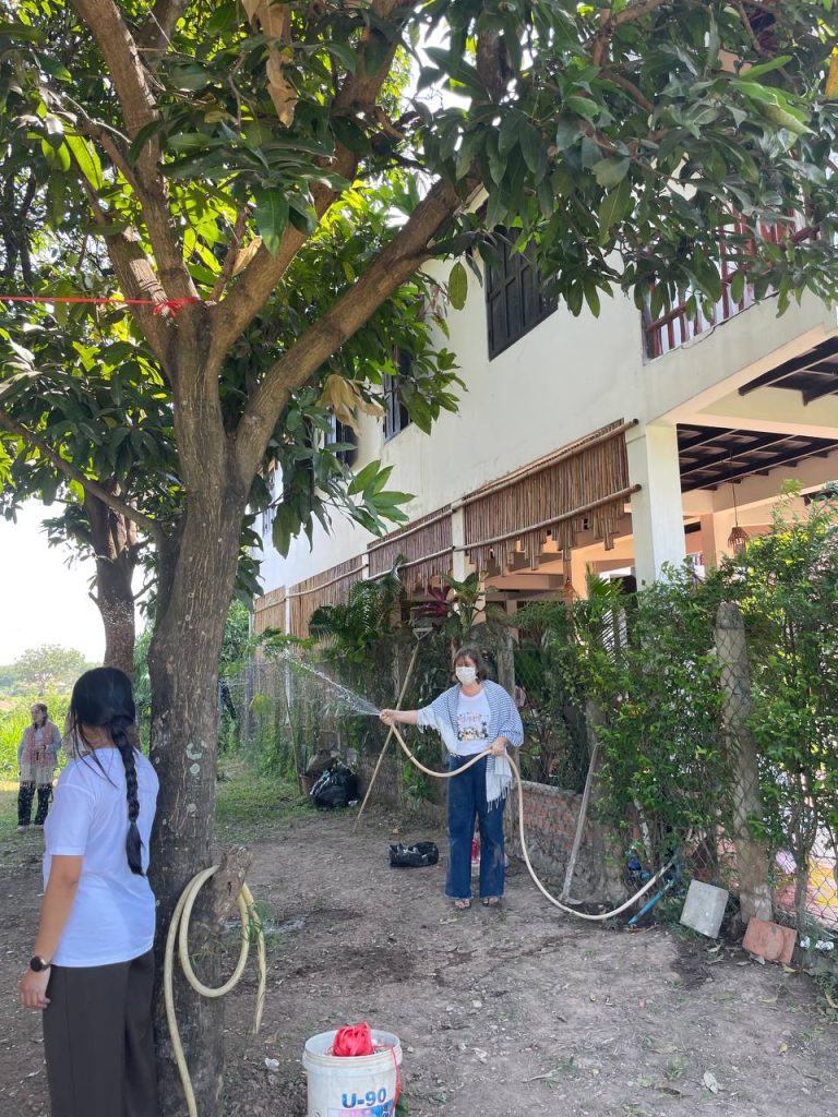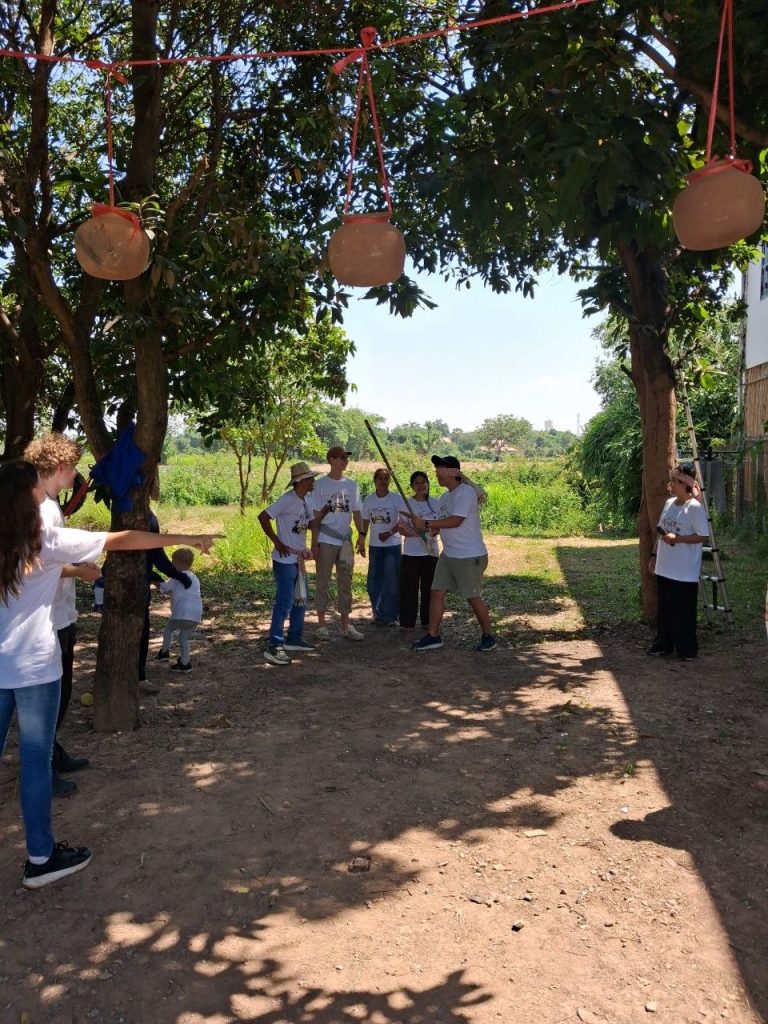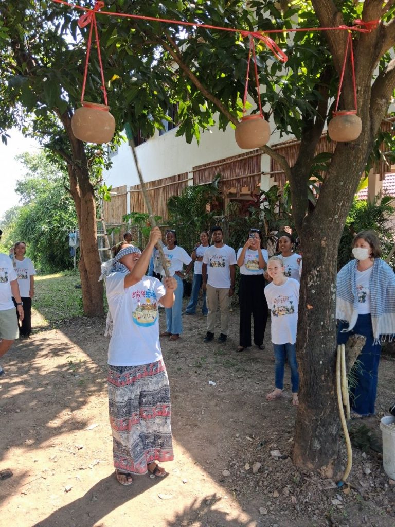 After the devotional we played traditional Khmer New Year games like Throw Seeds, Smash the Pot, and – a new one to me – Grab the Leaf (ដណ្តើមស្លឹកឈើ). It is bit like capture the flag but the tag game only starts after someone picks up the branch. So there are a lot of mindgames. As is normal for Khmer New Year baby powder and water were thrown with increasingly frequency as the day went on.